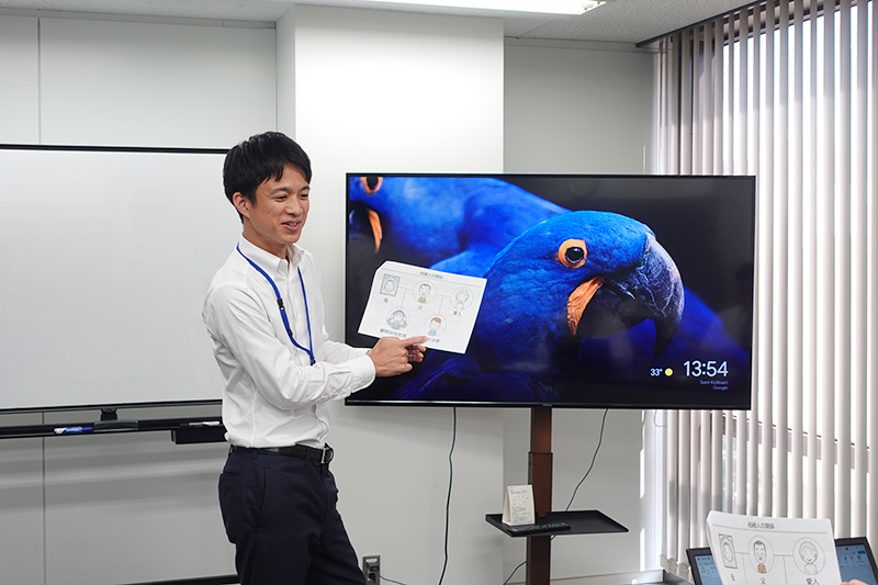 まずはオフィスを案内し、事務所の雰囲気を感じてもらいます。弁護士が実際に働く執務スペースや、お客様をお迎えする会議室など、普段は見ることのできない事務所の裏側までご案内します。